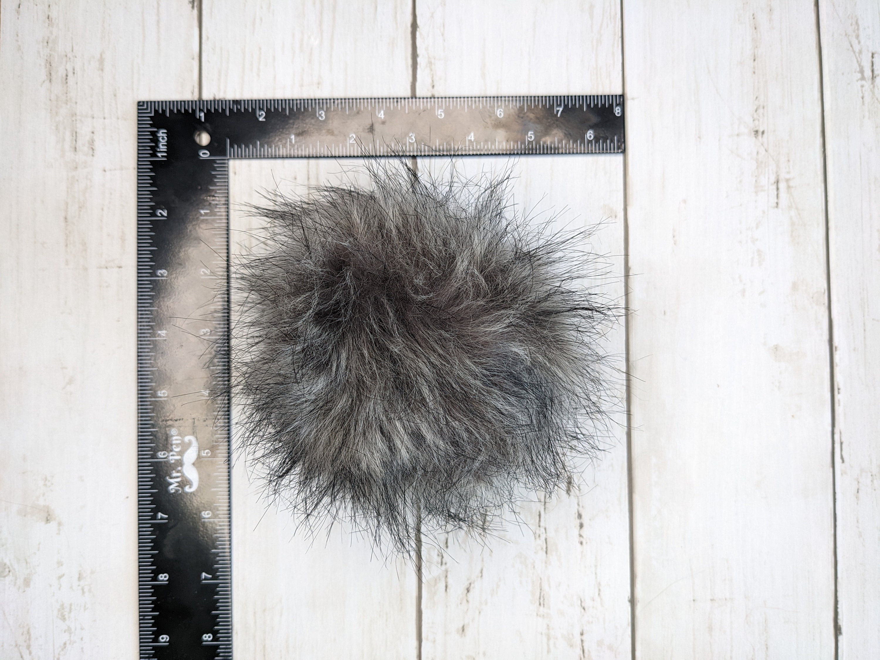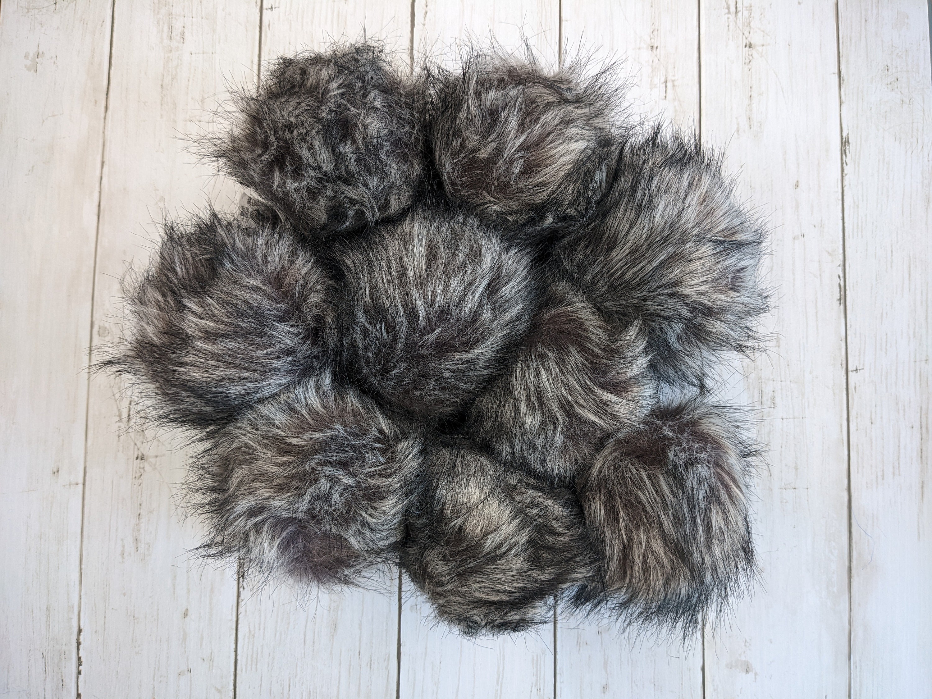 Large Gray & Black Faux Fur Pom Pom with Black Tips